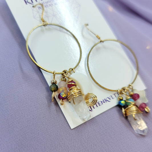 Mystical Celestial Quartz Moss Agate & Shell Charm Earrings, Ethereal Fairy Crystal Earrings