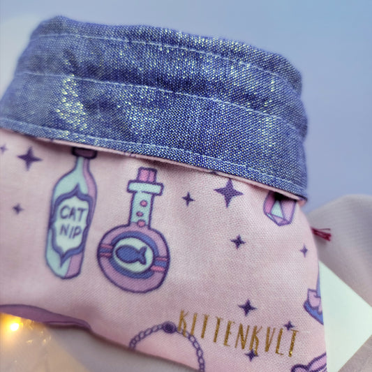 Mystical Kitty & Bat Trinket Crystal Pouch, Kawaii Witch Bag
