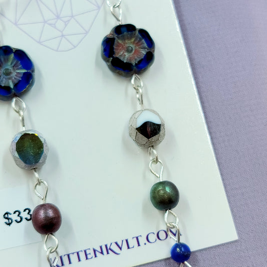 Lapis Lazuli & Czech Glass Flower Earrings