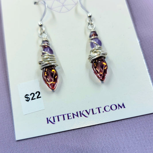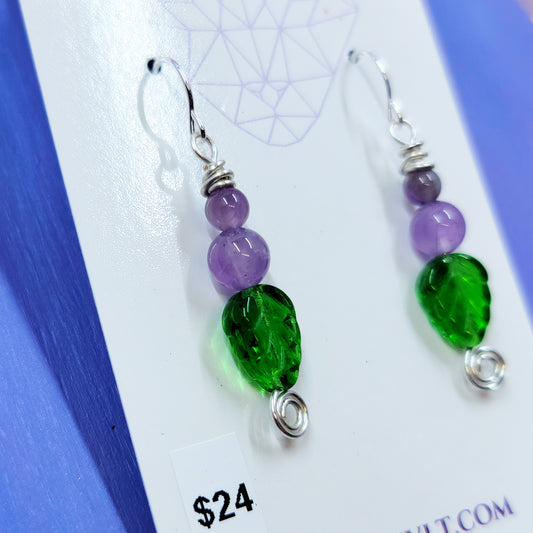 Earthy Fairy Amethyst Leaf Earrings