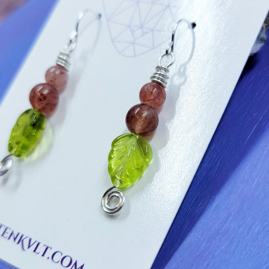 Earthy Fairy Strawberry Quartz Leaf Earrings