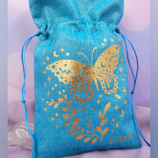 Mystical Witchy Celestial Butterfly Tarot Oracle Pouch Sparkly Fabric