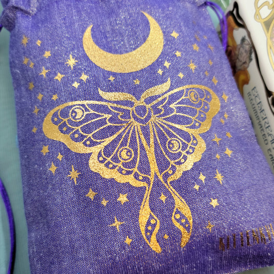 Mystical Witchy Celestial Luna Moth Moon Tarot Oracle Pouch Sparkly Fabric