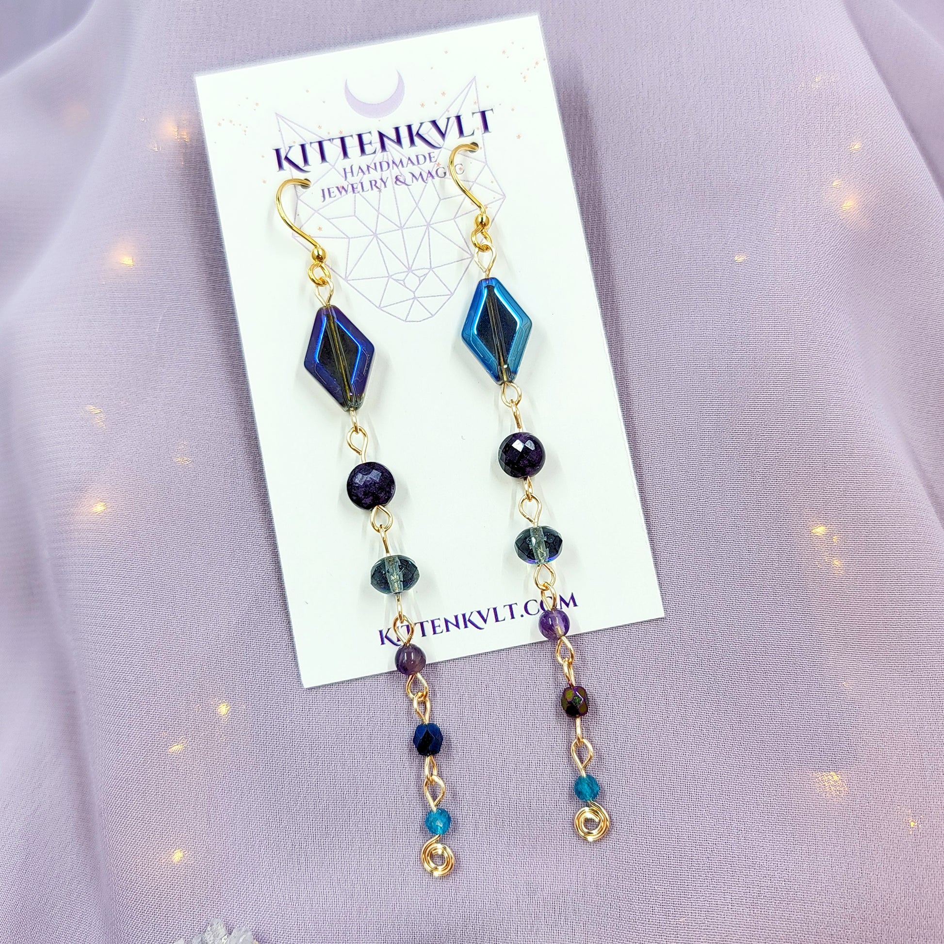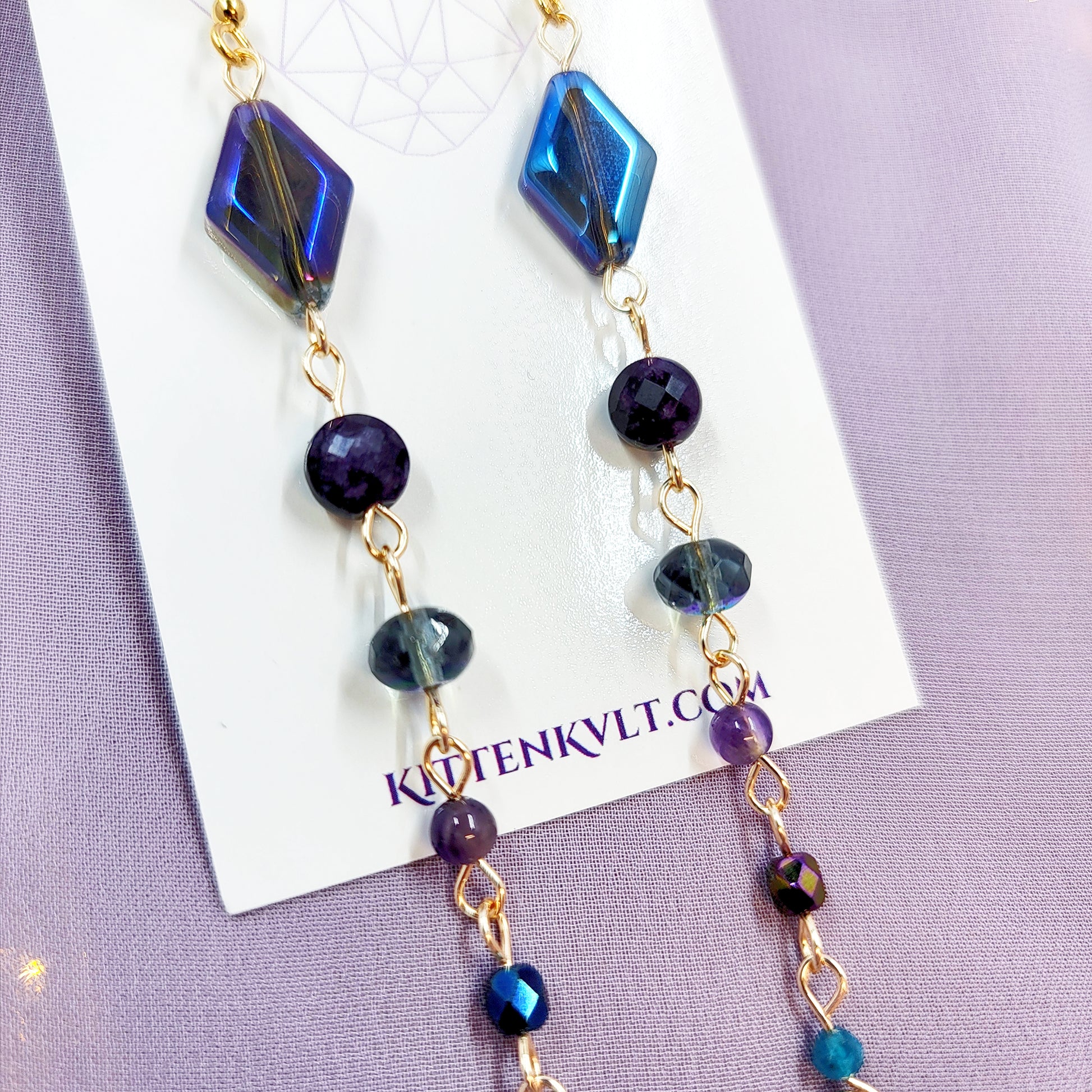 - faceted amethyst, faceted AA grade blue apatite, high quality Czech Glass beads