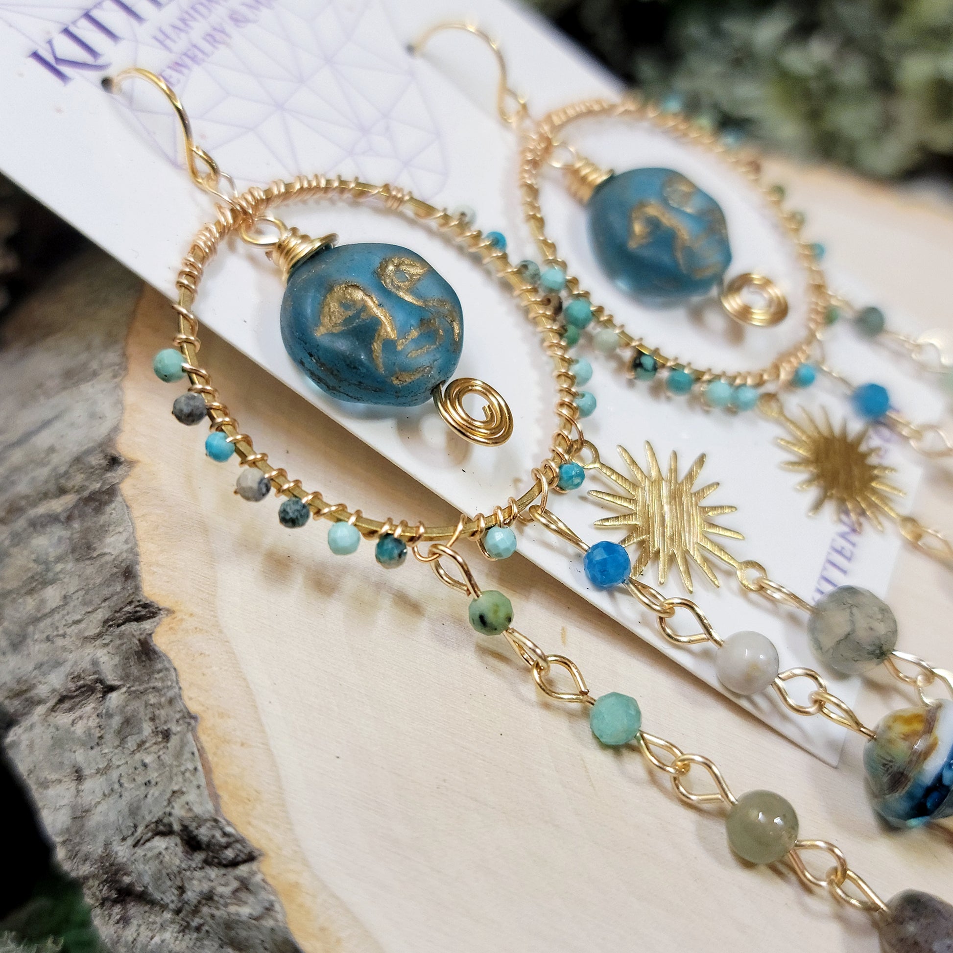 Blue apatite, ocean jasper, amazonite, African jasper, high quality Czech glass beads