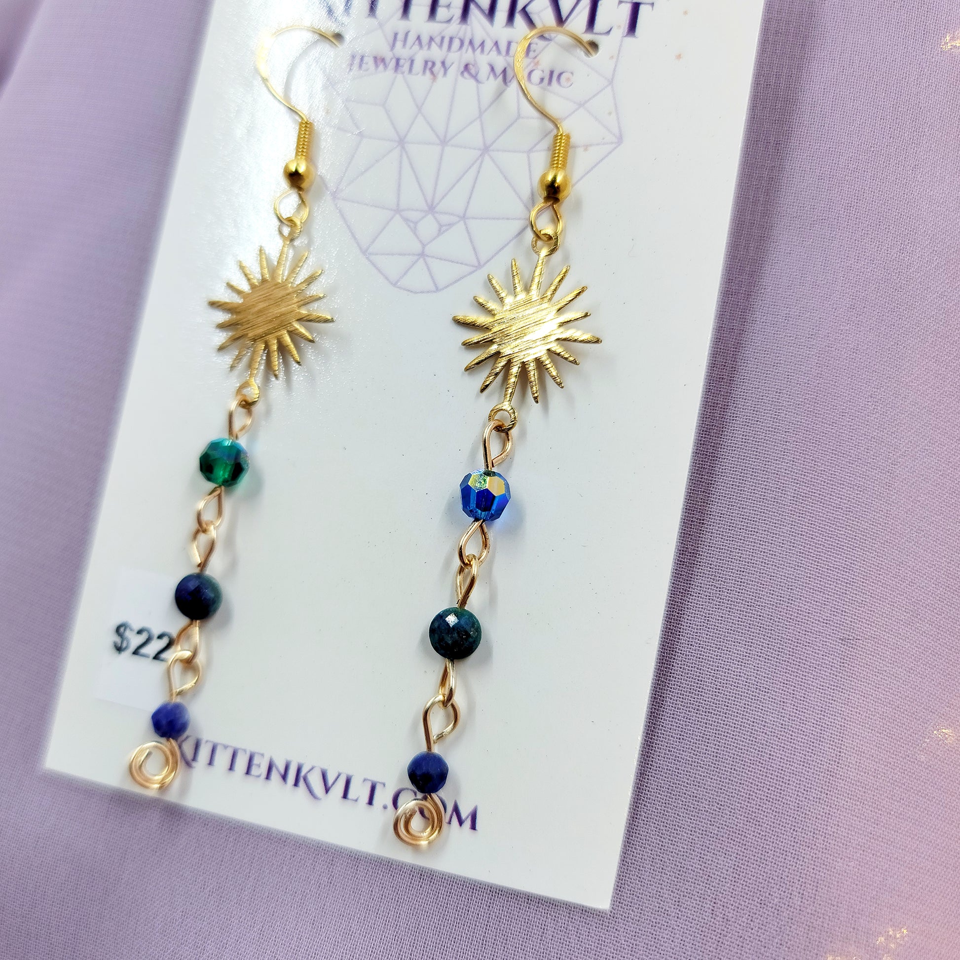 Celestial Fairy Azurite, Lapis Lazuli & Czech Glass Witchy Starry Sky Earrings