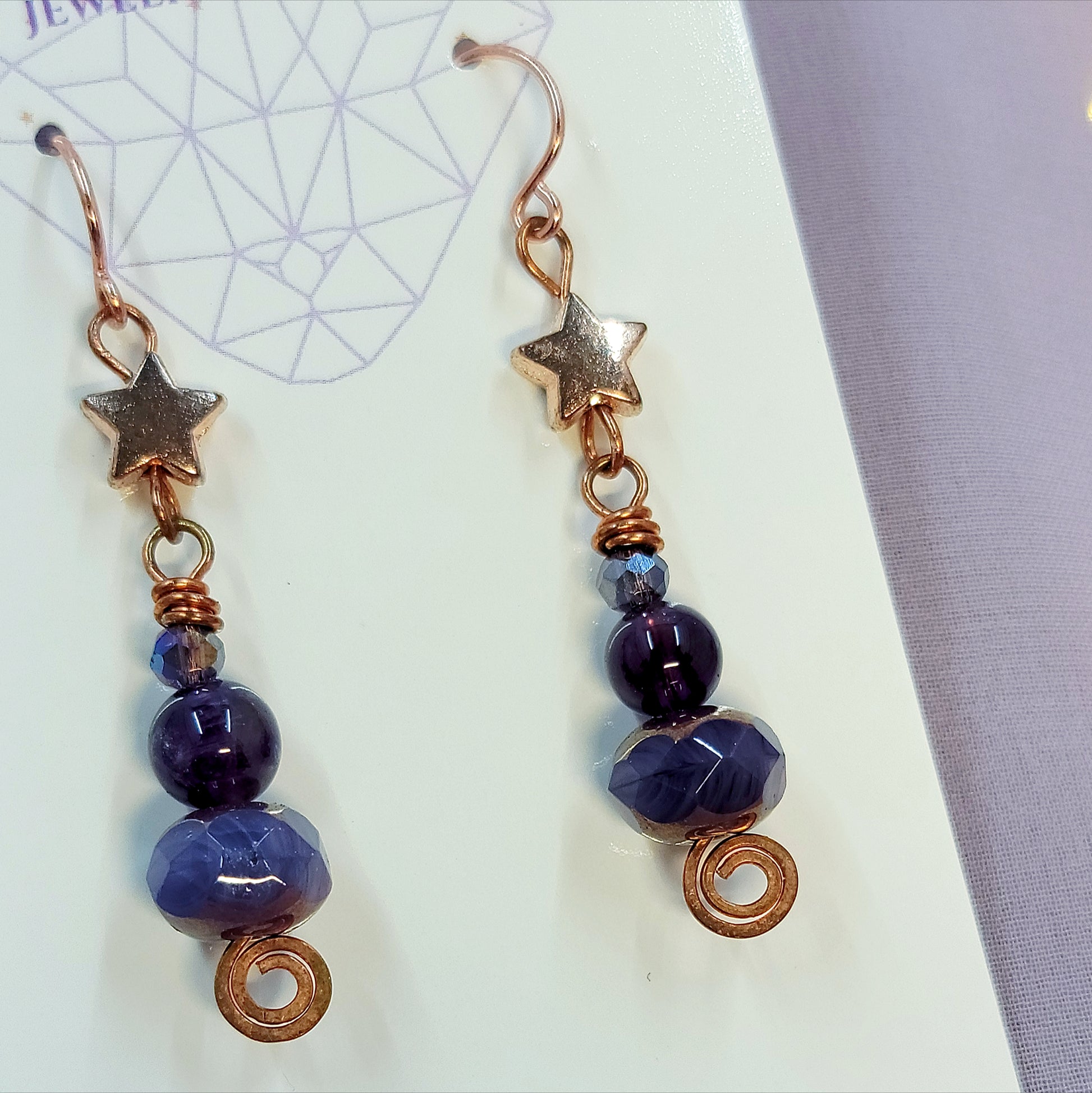 Celestial Witchy Amethyst Star Earrings, Copper Crystal Ethereal Fairy Dark Witch Amethyst Earrings