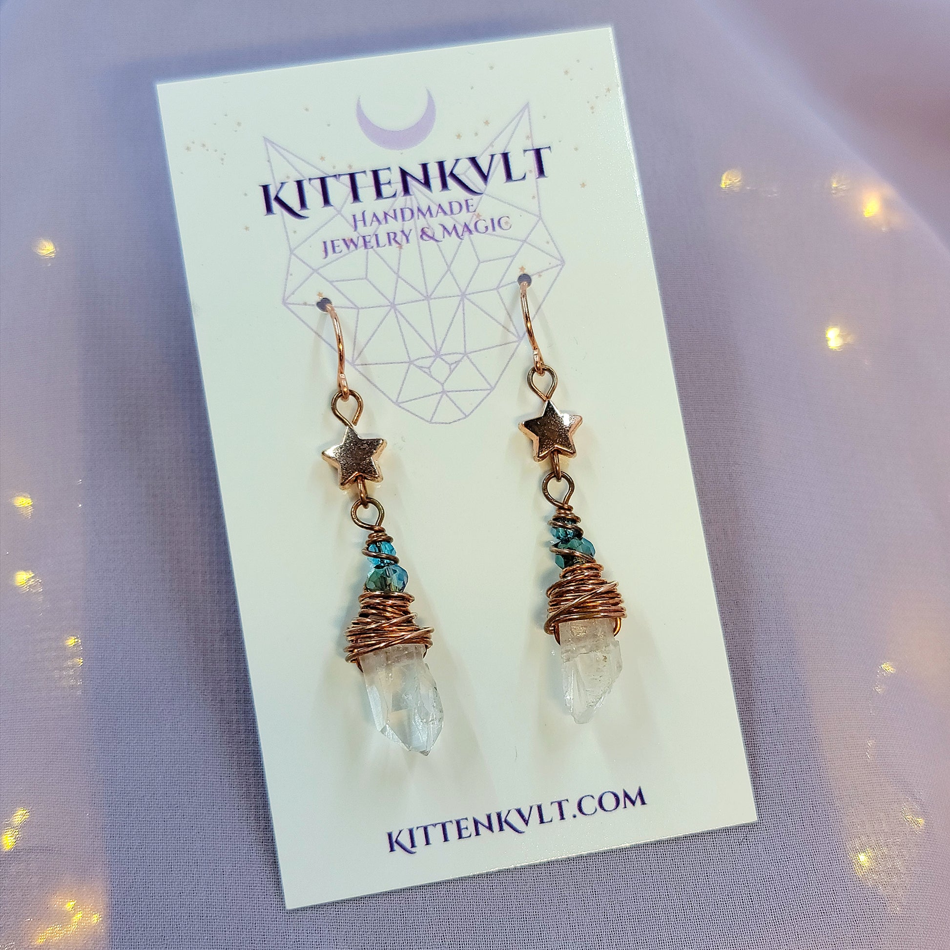 Celestial Witchy Quartz Star Earrings, Copper Crystal Dainty Ethereal Fairy Space Witch Earrings