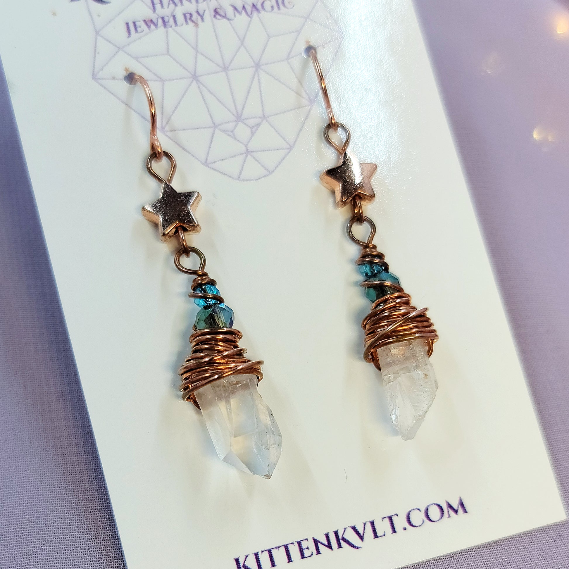 Add a fabulous statement to your look with these quartz & copper star earrings! Perfect gift for treating yourself or a special witchy friend.