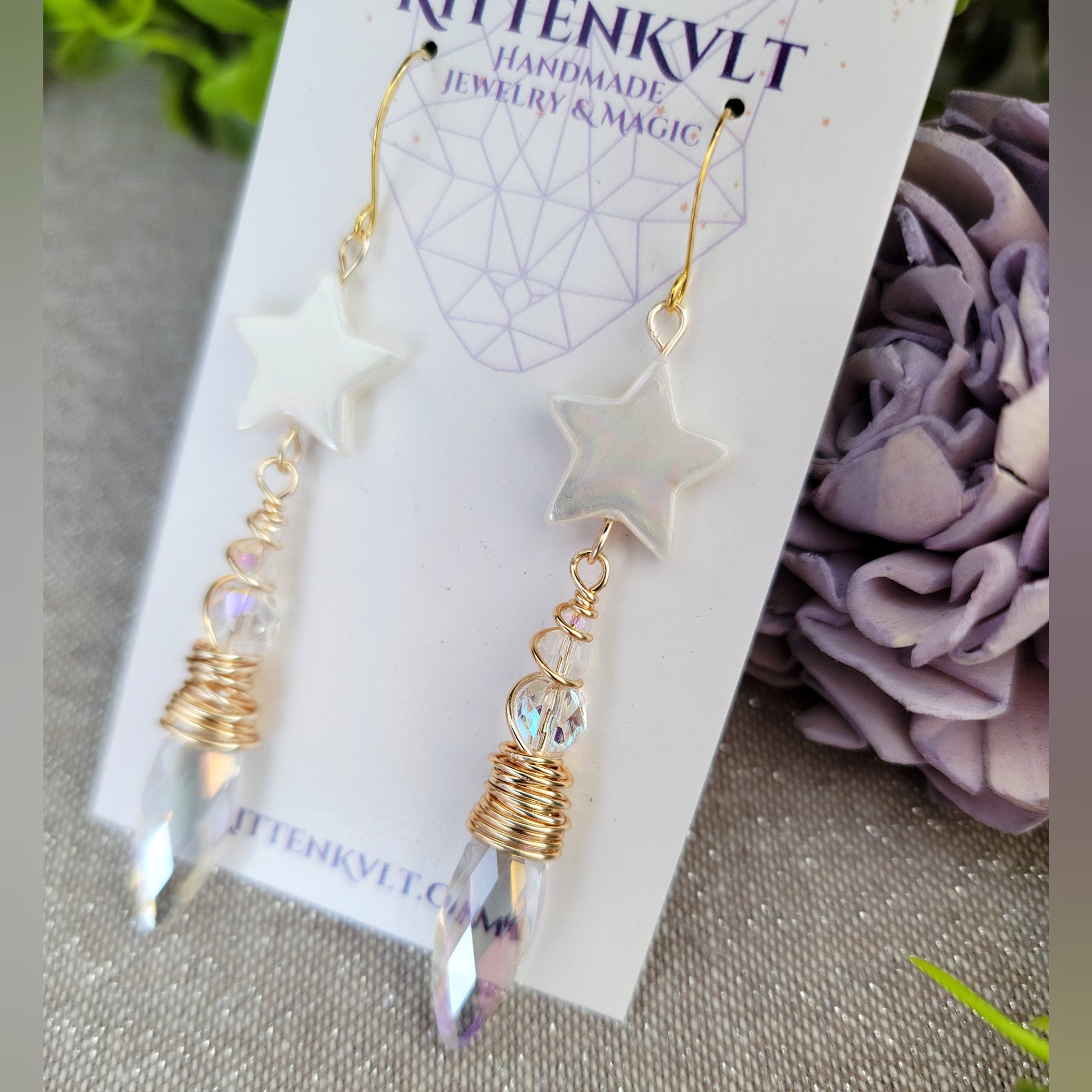 - sun catcher glass beads, Czech Glass prism beads, mother of pearl shell star beada