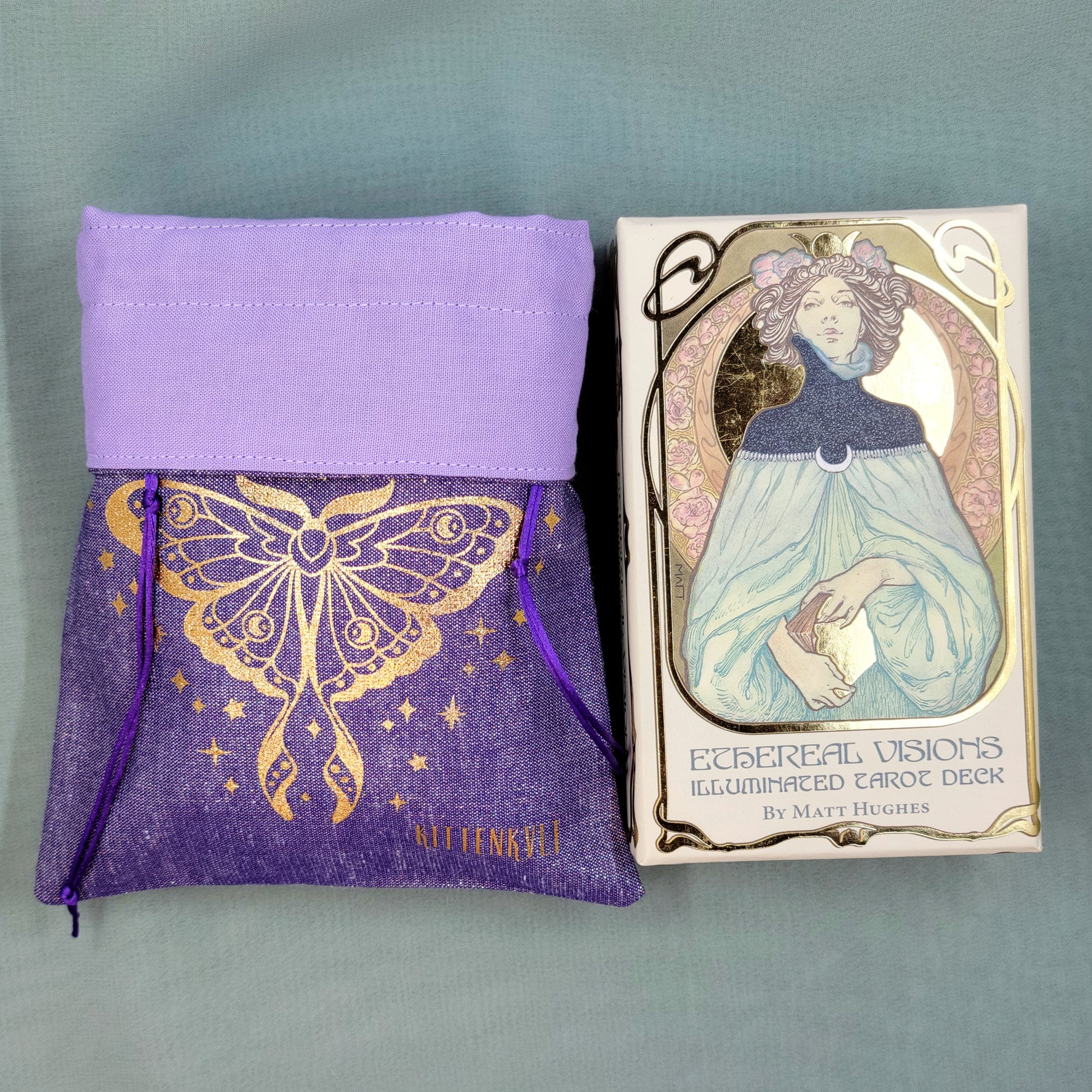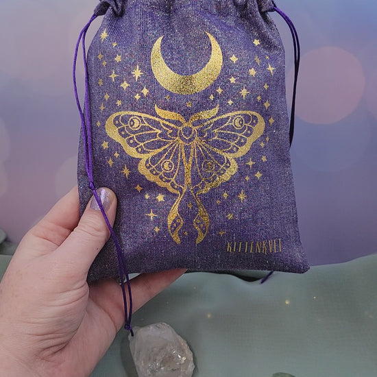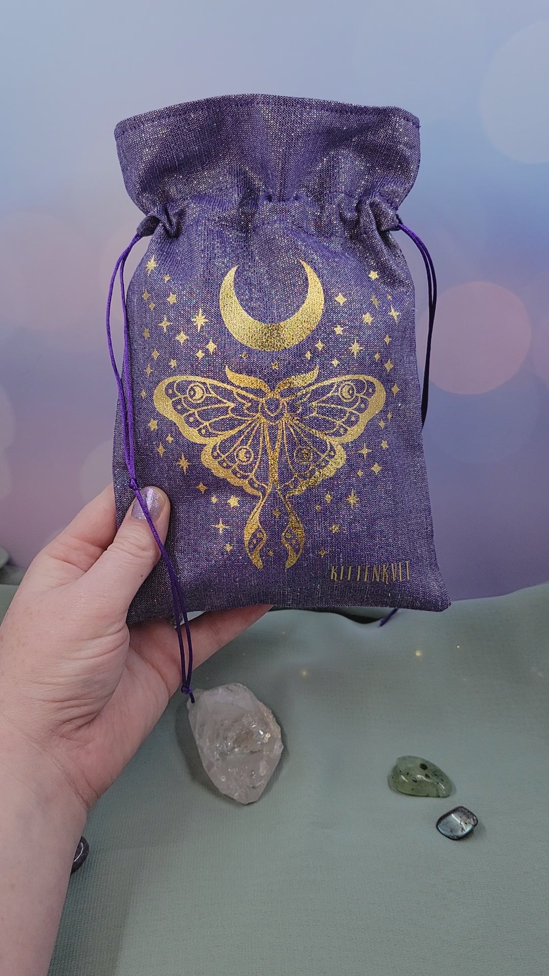 Mystical Witchy Celestial Luna Moth Moon Tarot Oracle Pouch Sparkly Fabric