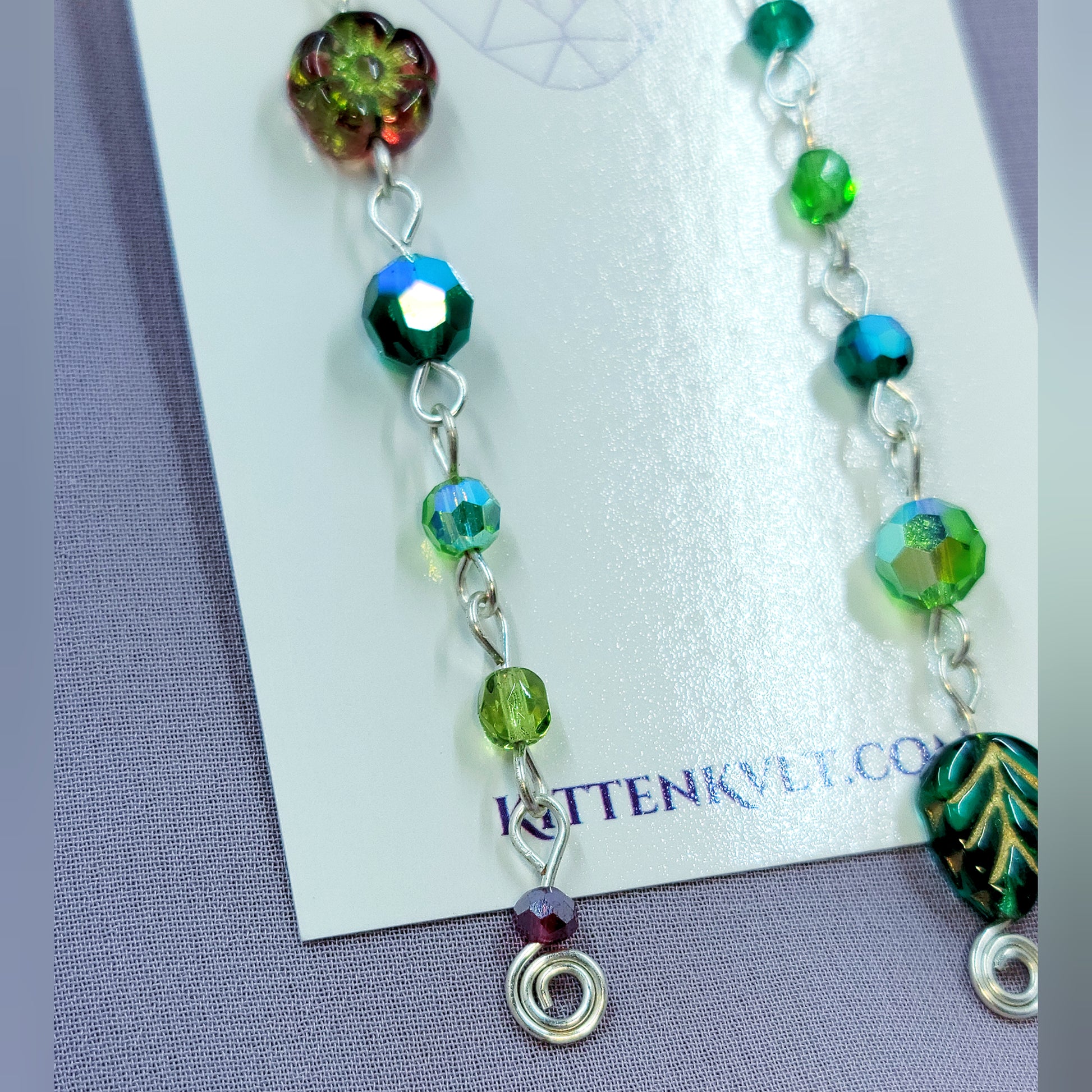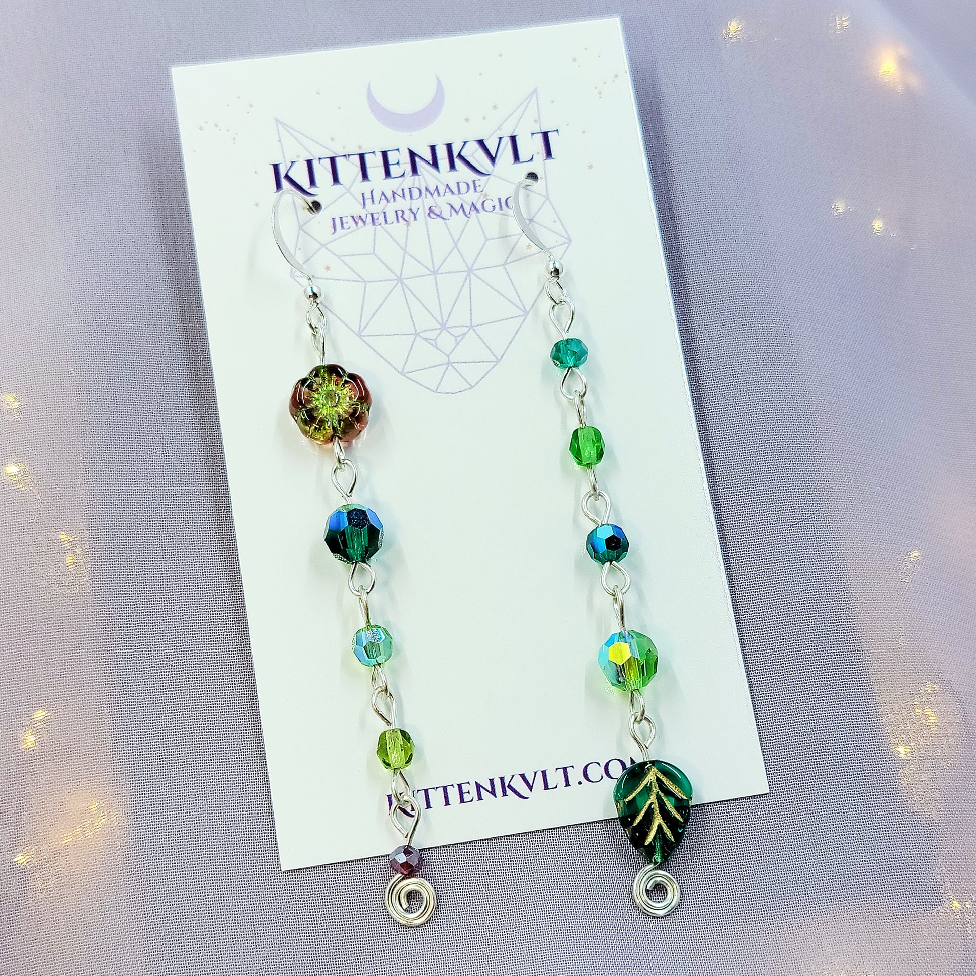 Czech Glass Cottage Witch Fairy Flower & Leaf Earrings