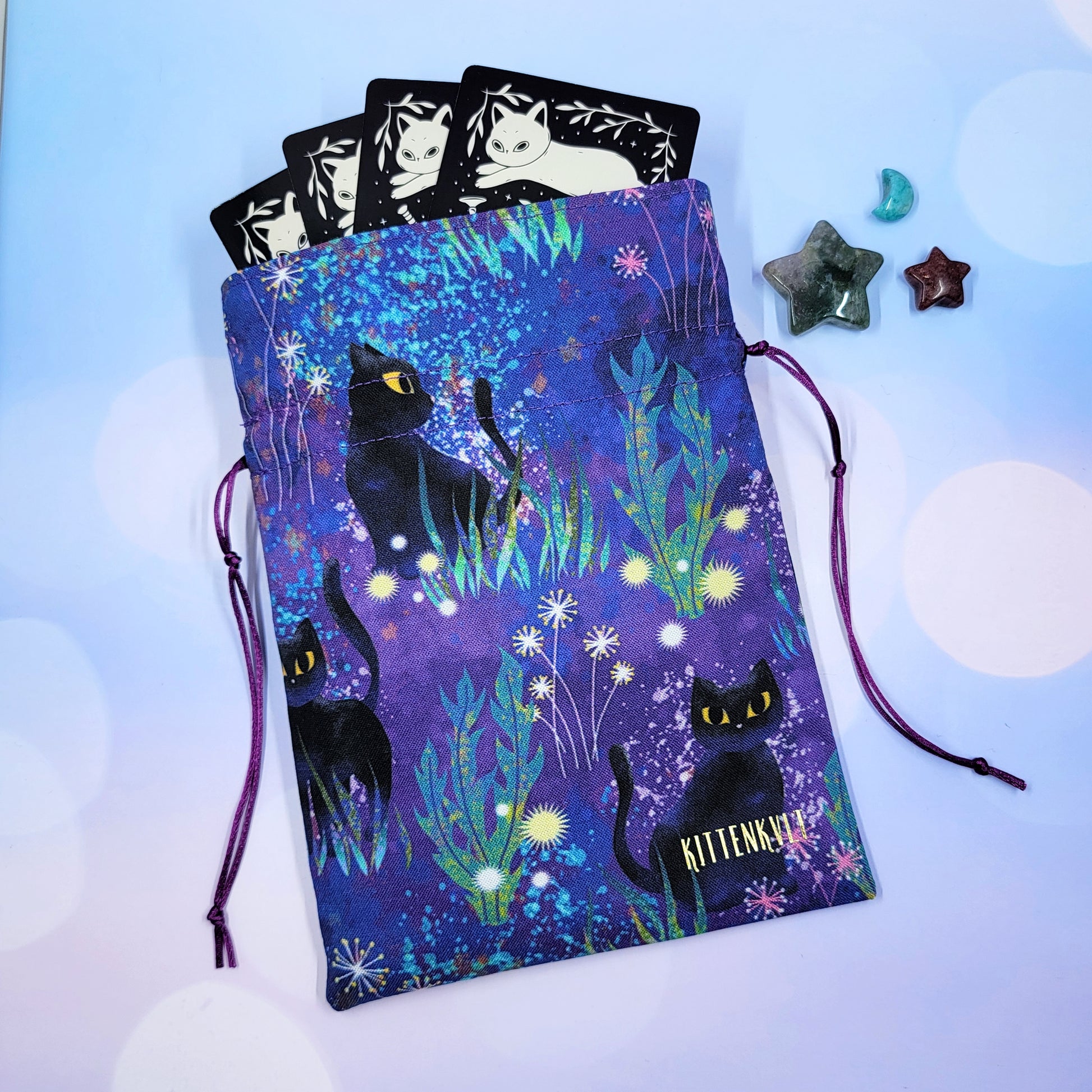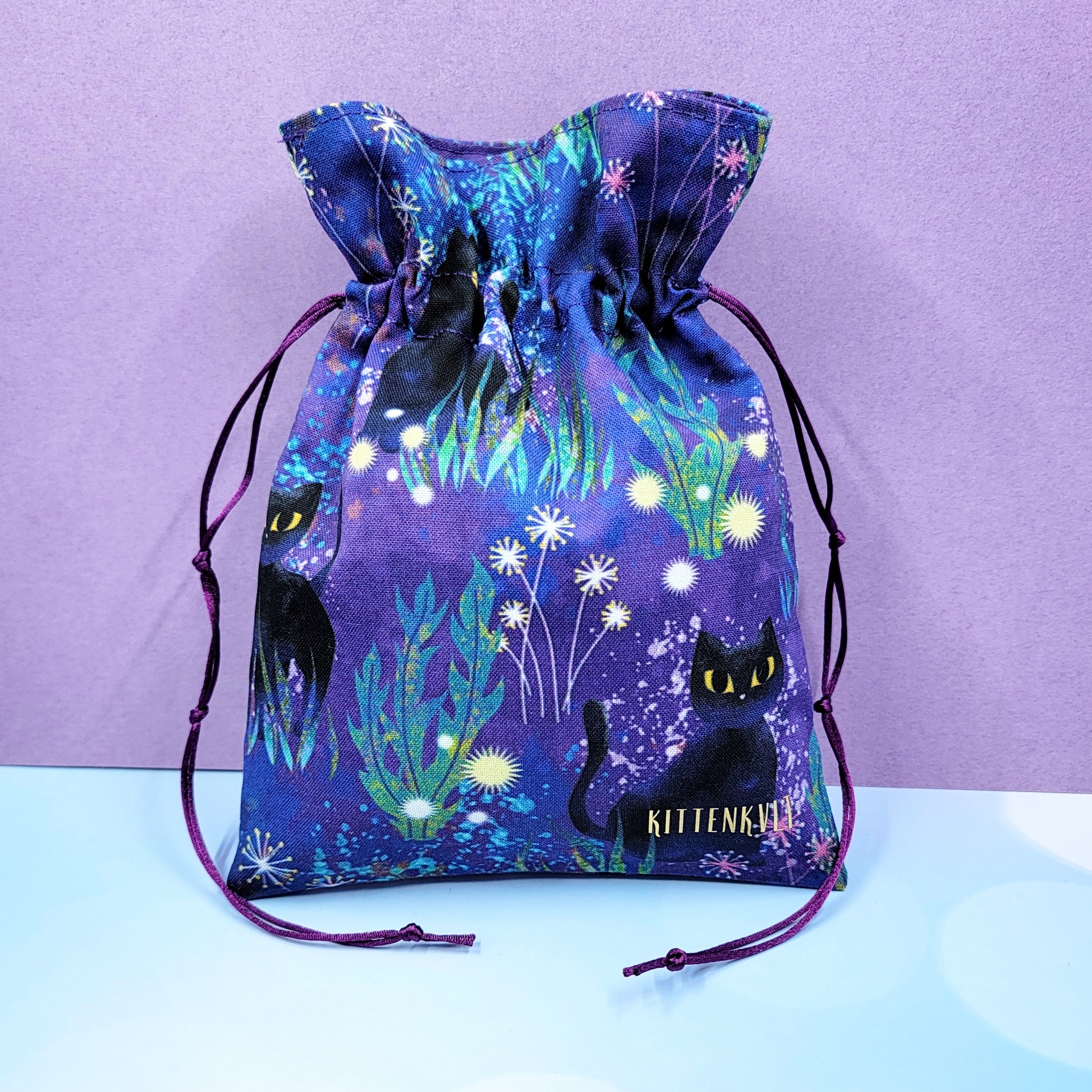 Mystical Black Kitty Cat Garden Trinket Pouch