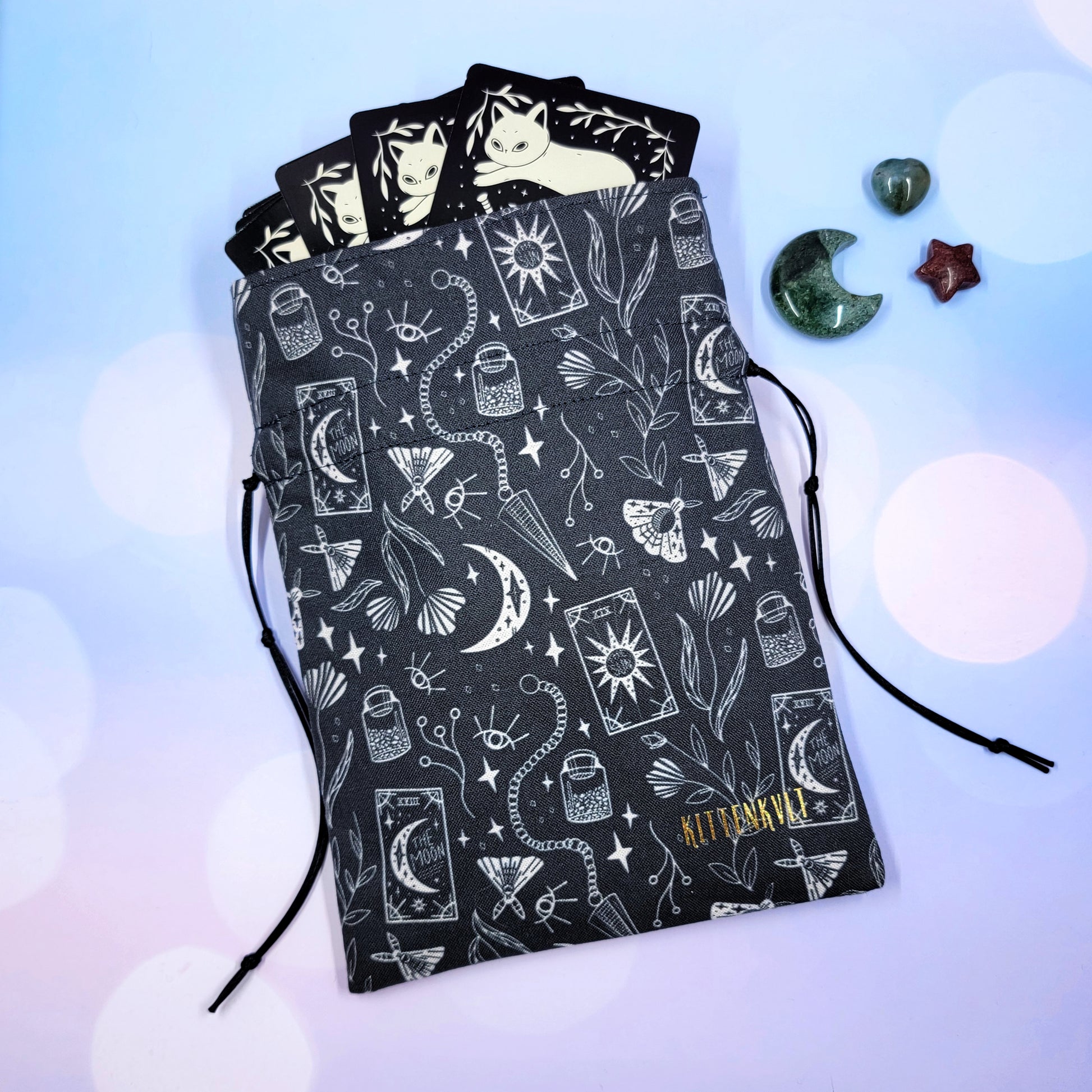 A magical pouch handmade by me! Perfect for mini tarot decks, 🍃🌬️ accessories, divination tools, gift bag for earrings, toiletry travel bag, lots of crystals, & more! Listing is for POUCH ONLY, no other items included. Item is made to order special for you, please allow for a few days before shipping.