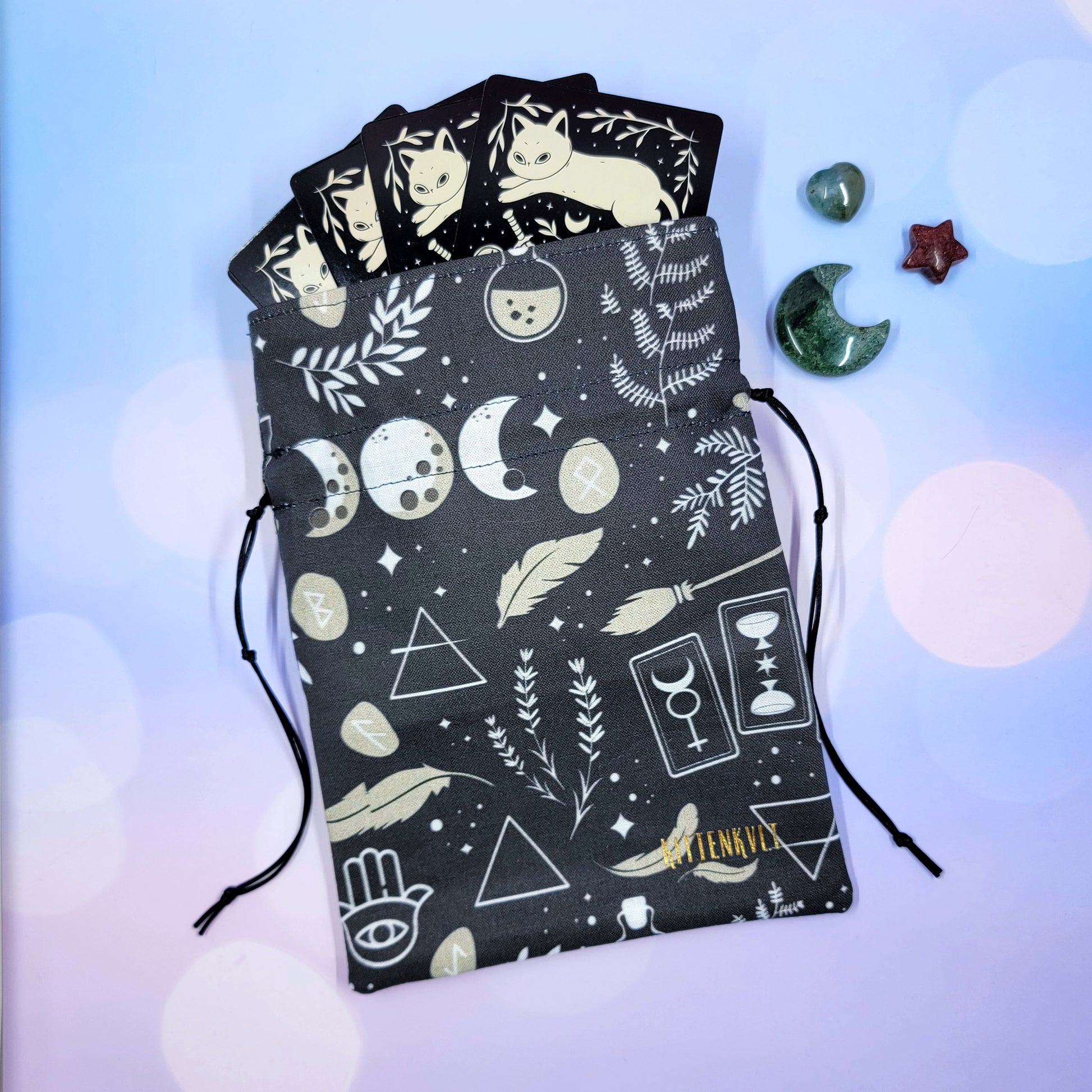 A magical pouch handmade by me! Perfect for mini tarot decks, 🍃🌬️ accessories, divination tools, gift bag for earrings, toiletry travel bag, lots of crystals, & more! Listing is for POUCH ONLY, no other items included. Item is made to order special for you, please allow for a few days before shipping.