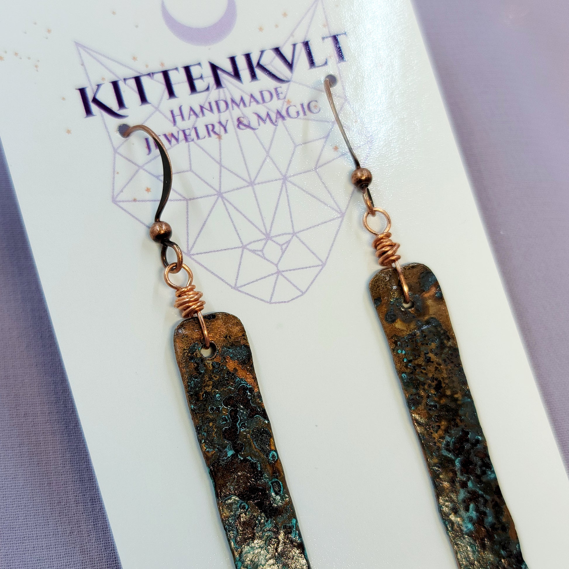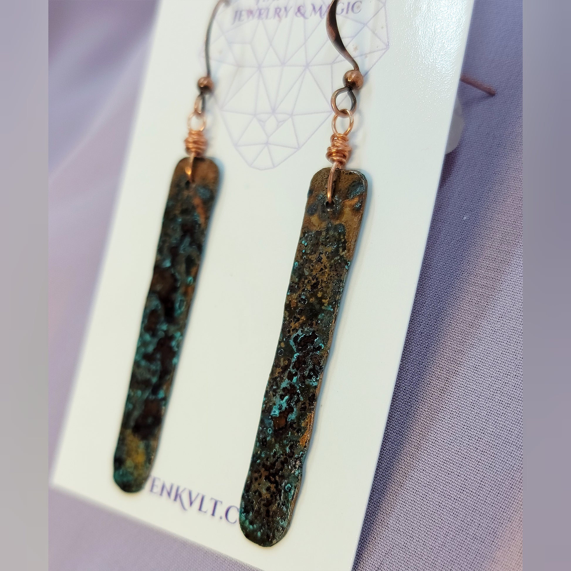 - copper patinas very quickly (darkens and develops more colors). You can slow this process by avoiding getting the copper wet and storing in a plastic ziploc when not wearing.