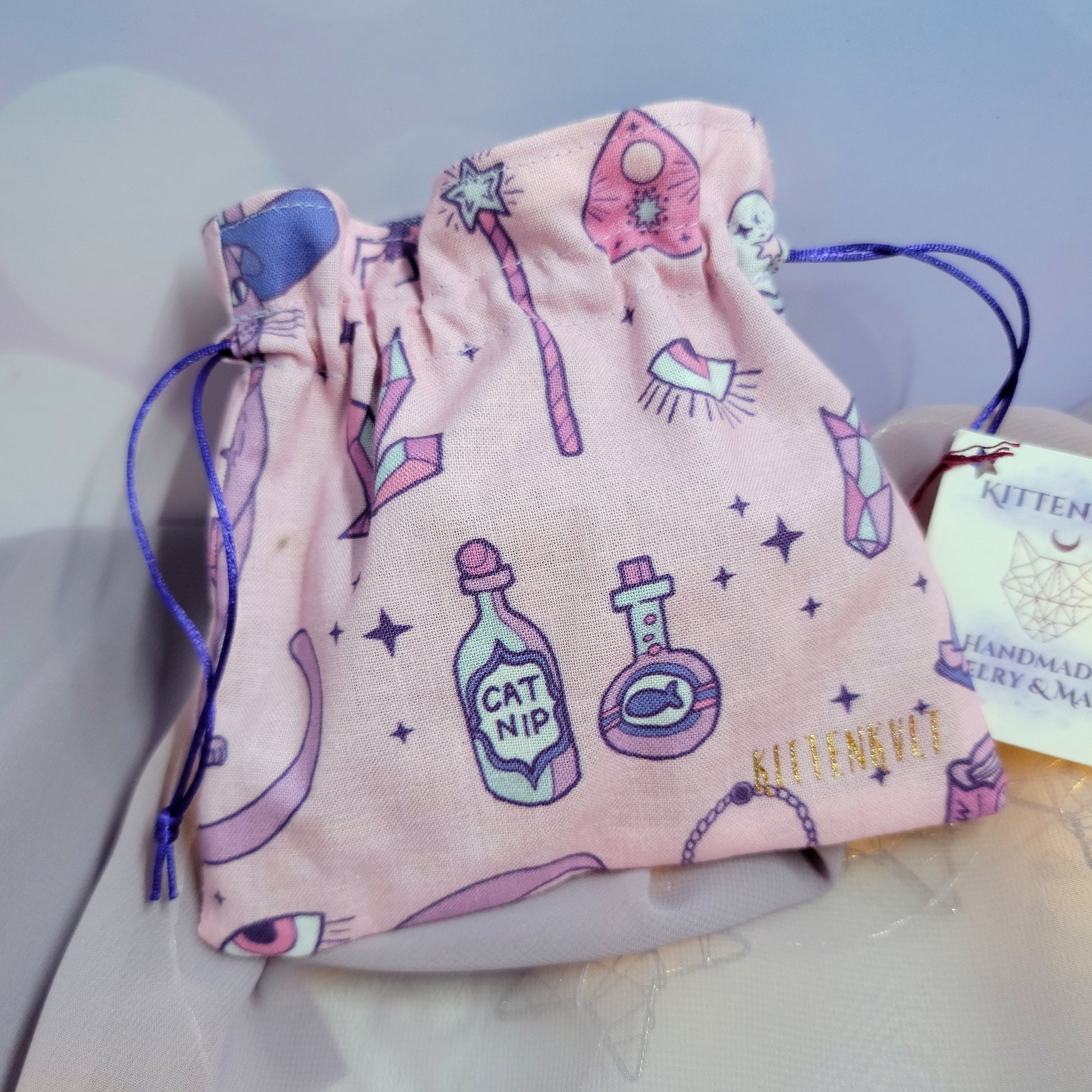 Mystical Witchy Kitty Trinket Crystal Pouch