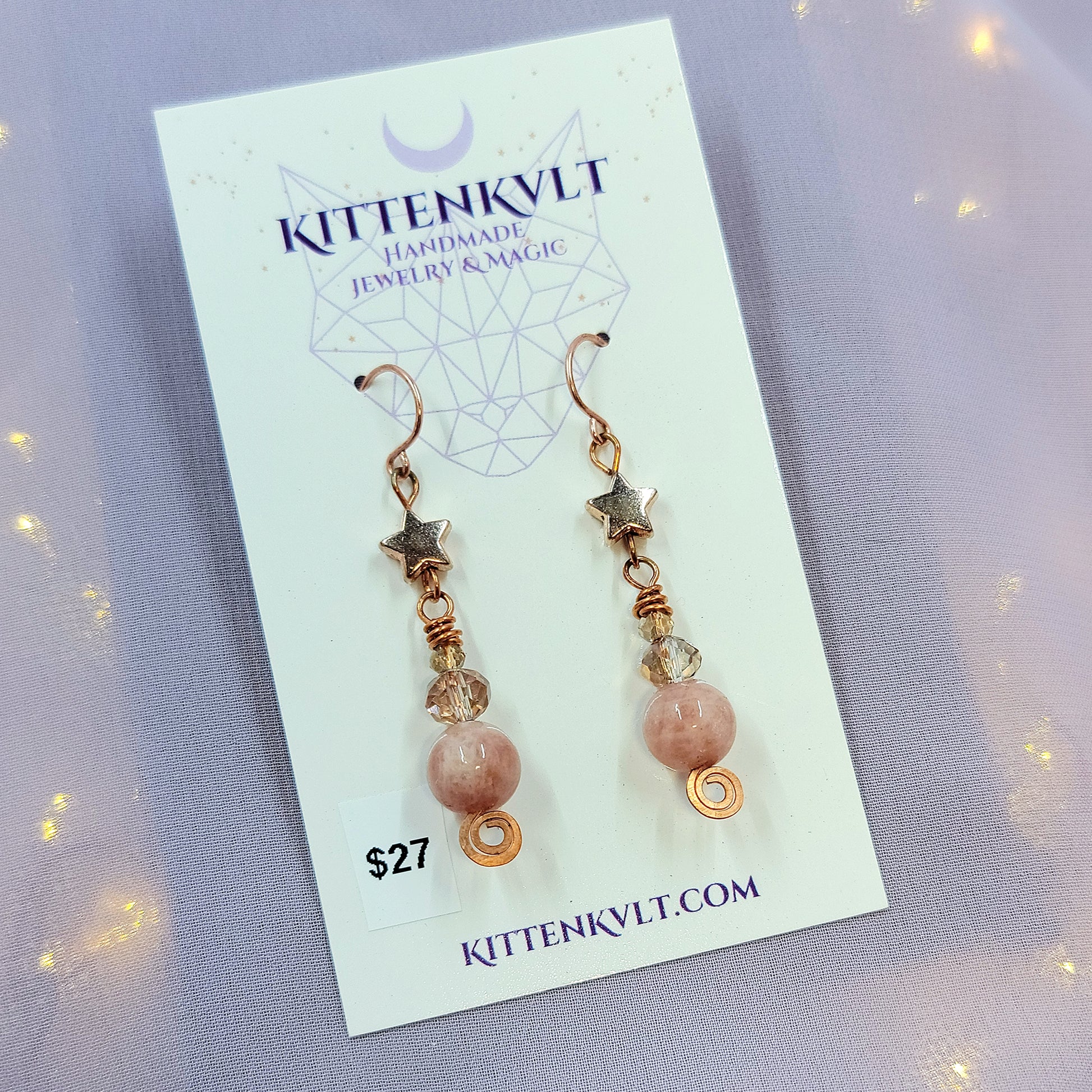 Witchy Fairy Celestial Sunstone Cosmic Copper Earrings